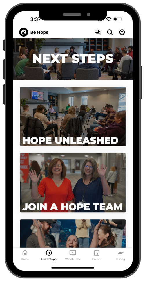 Ready to grow? Our app guides you in taking the next step: join Hope Unleashed, serve with a Hope Team, explore purpose in Hope Discovered, or find support in Celebrate Recovery. Connect with God and others on your faith journey.